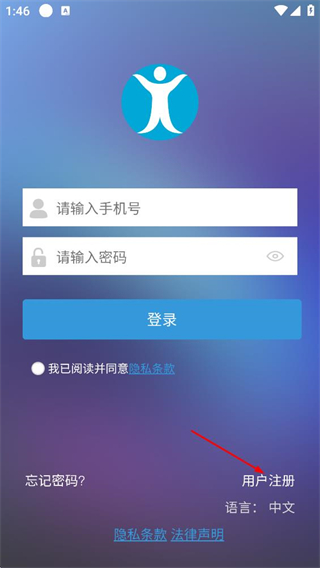1、在登录页面,点击右下角的用户注册的选项,进入注册界面。