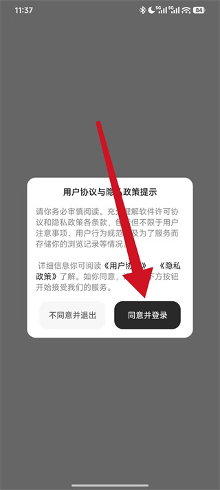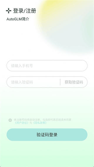 1、打开AutoGLM App,在弹出中点击同意并登录