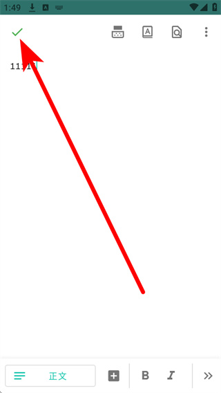 4、在编辑页面完成内容创作后,点击左上角的对勾按钮,即可保存当前文档。