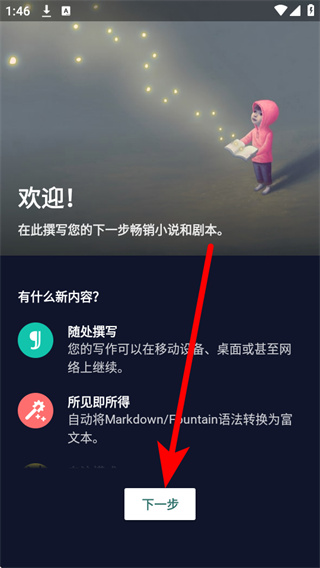 1、打开JotterPad APP,在欢迎页面点击下一步,进入应用主界面。