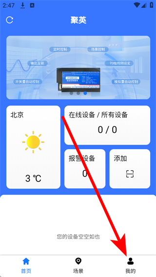 1、打开聚英云平台APP,在首页底部点击我的,进入个人页面。