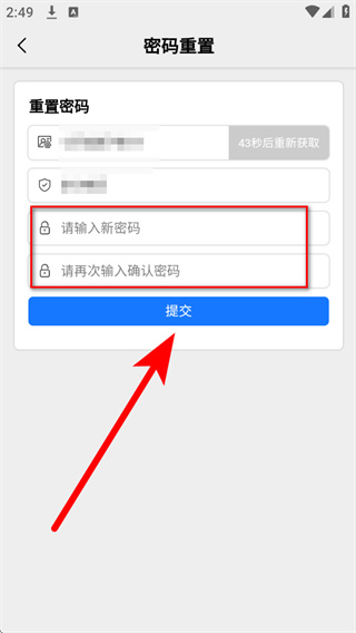 5、进入新密码设置页面,输入新密码、再次输入确认密码,点击提交,即可完成密码修改。