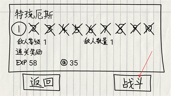 2、进入特琉尼斯的关卡界面,看到敌人等级1、数量1,通关奖励含58点经验值与35货币,点击战斗按钮即可开启该关卡的挑战。