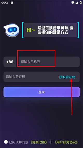 1、在使用协议隐私政策弹窗中点击同意按钮,进入登录页面。