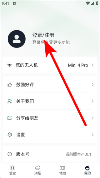 1、打开天信低空通,点击底部的我的,进入我的页面。