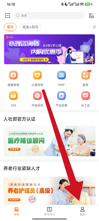 1、打开知鸟APP,点击底部导航栏的我的,进入个人页面。