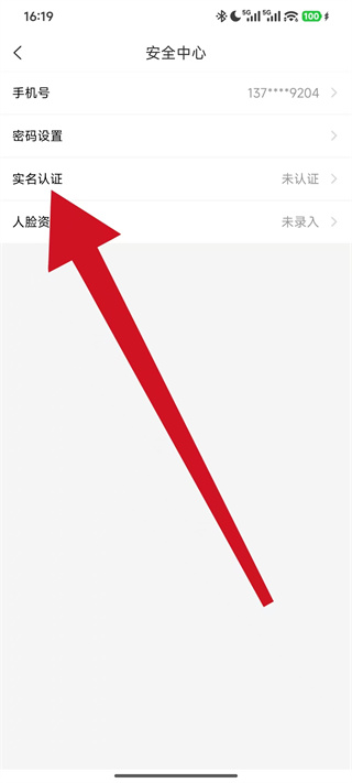 4、在安全中心页面点击实名认证,按照页面提示提交对应信息,完成实名认证操作。