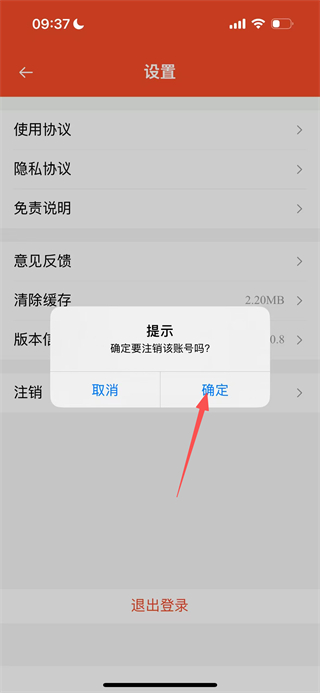 4、在提示框中点击确定按钮,即可完成账号注销操作。