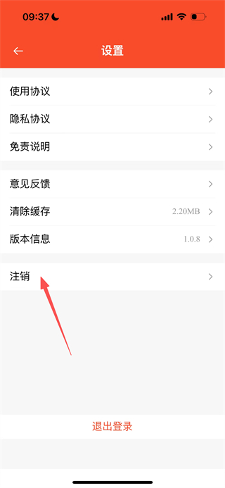 3、在设置页面,点击注销选项,弹出账号注销确认提示框。