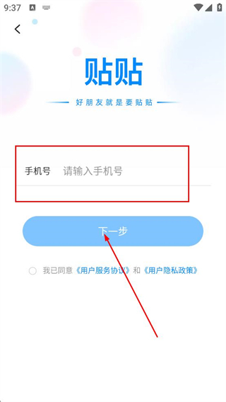 3、在手机号输入页面,填写手机号对应的内容,点击下一步。