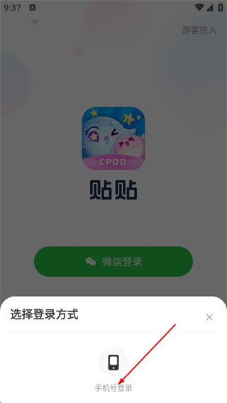 2、在登录方式选择界面,点击手机号登录,进入输入页面。