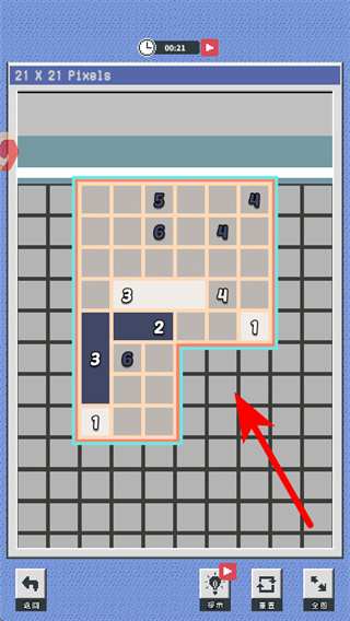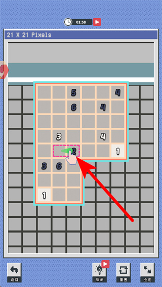 2、在关卡界面,点击带有数字标识的像素块如数字2,开始修复对应区域。