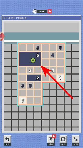 4、逐步填充所有数字对应的像素块,完成整个画面的修复,即可通关该关卡。