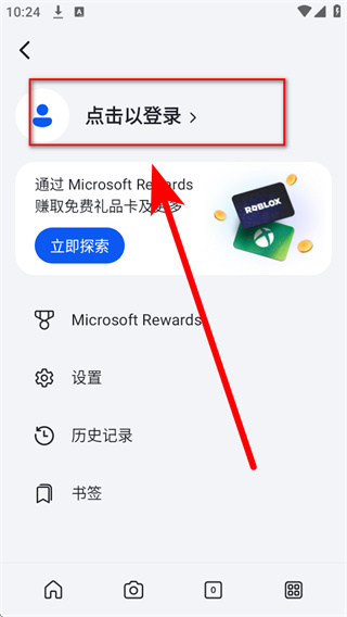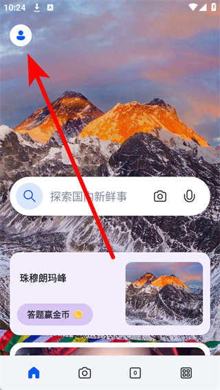 1、打开微软必应,点击首页左上角的头像图标,进入个人相关页面。
