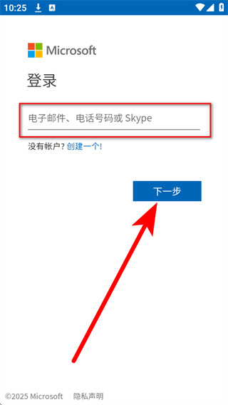 3、跳转到Microsoft登录页面后,在输入框填写对应账号,点击下一步。