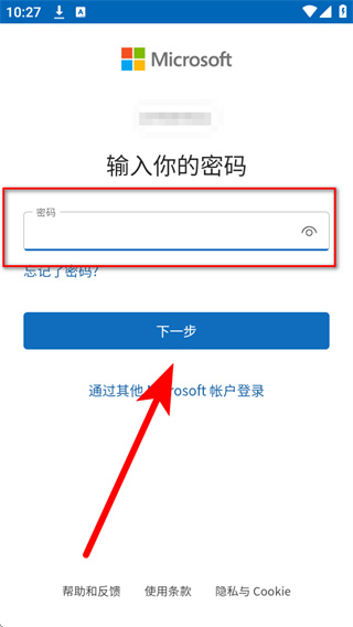 4、在输入框填写密码,点击下一步,即可完成微软必应的账号登录。
