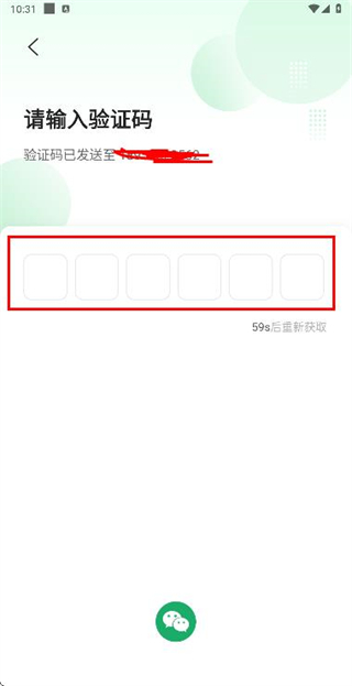 3、在输入短信验证码页面填写收到的验证码,完成账号的登录操作。