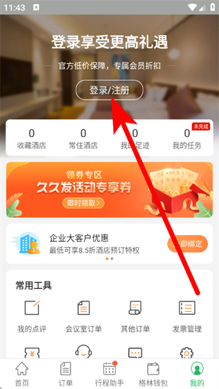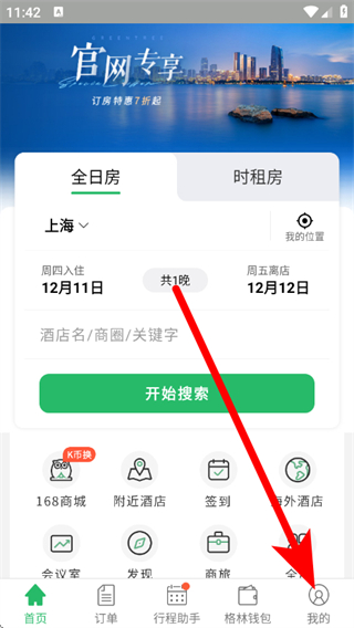 1、打开格林豪泰,点击底部我的,进入个人页面。