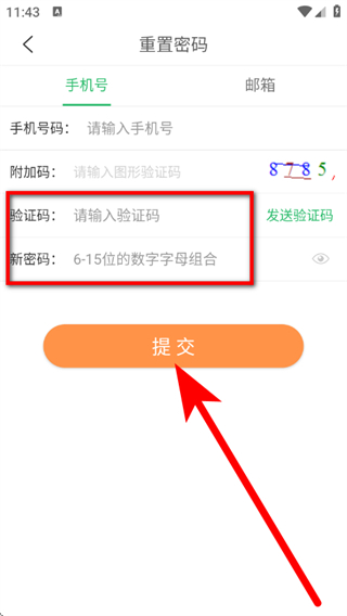 5、输入验证码和新密码后,点击提交,完成密码重置。