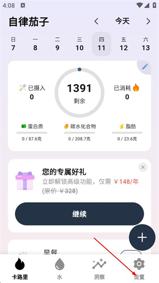 1、在自律茄子的欢迎页面,点击同意,进入应用首页。