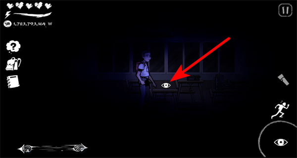 3、在黑暗教室场景中,点击指向带眼睛标识的物品,这是调查场景线索的关键步骤,互动后可收集该物品或获取相关剧情信息。