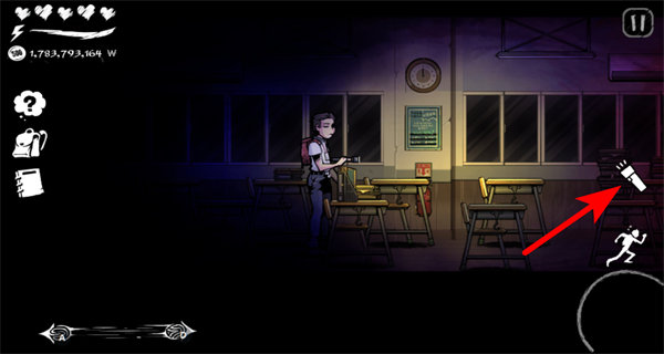 4、在昏暗的食堂场景中,点击手电筒道具,这是开启照明/探索功能的核心操作,使用后可更清晰地观察场景、推进探索流程。