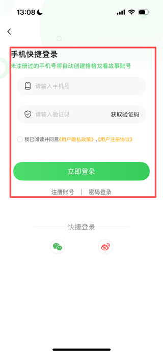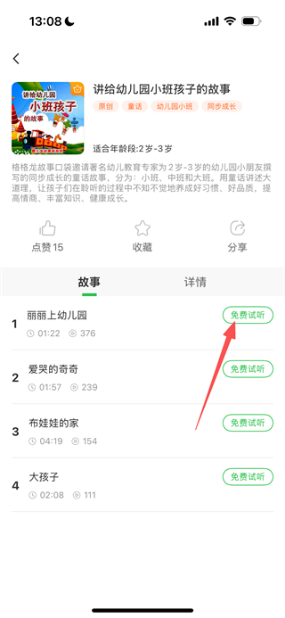 3、在故事详情页,点击免费试听按钮,若未登录进入登录页面。