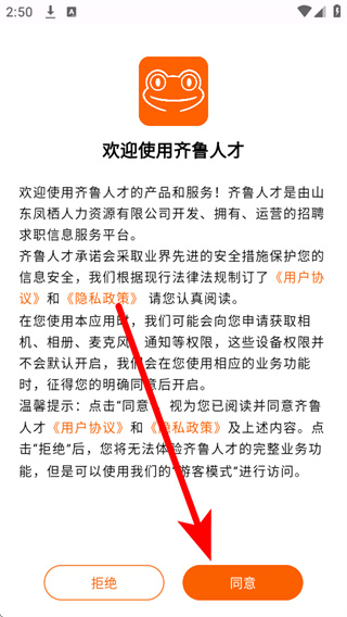 1、打开齐鲁人才网,在欢迎页面点击同意,进入身份选择界面。