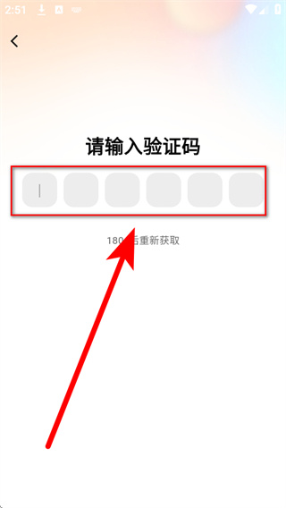 4、进入验证码输入页面,将收到的短信验证码填入输入框,完成注册操作。
