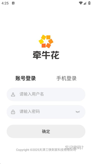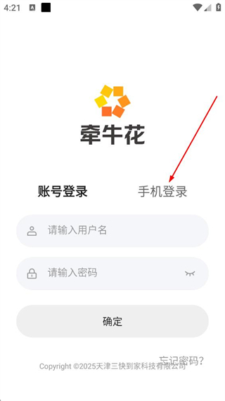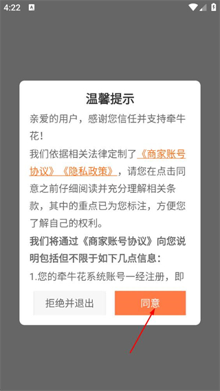 1、在牵牛花系统的温馨提示弹窗中,点击同意,进入登录选择页面。
