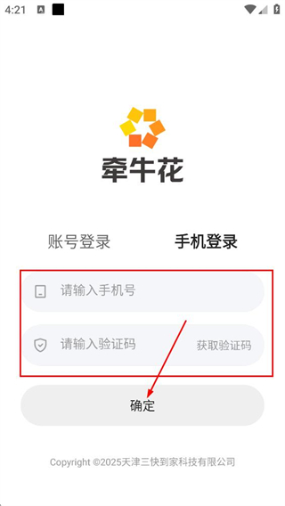 3、在手机登录界面,填写手机号,填写收到的验证码,点击确定,完成账号登录。