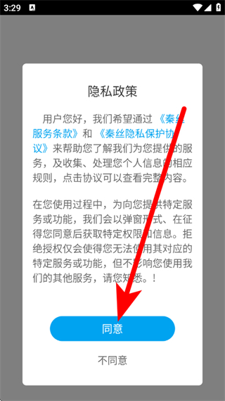 1、打开秦丝进销存,在弹出提示框,点击同意,进入注册界面。