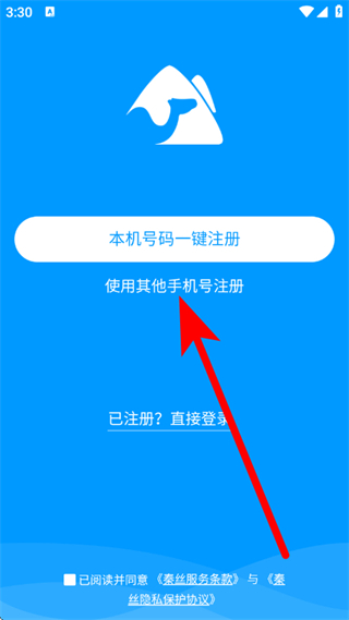 2、在注册界面,点击使用其他手机号注册,进入手机号注册页面。