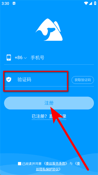 4、在输入框输入验证码,勾选协议,点击注册,完成注册操作。