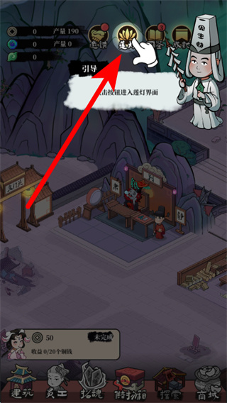 1、在地府日记主界面,点击顶部的莲灯按钮,进入莲灯系统界面。