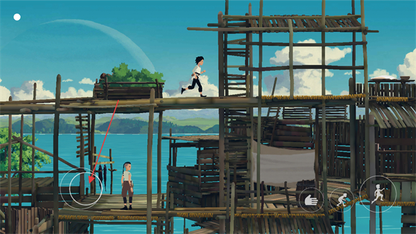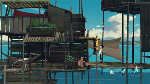 2、通过左侧移动摇杆控制角色移动,跟随前方目标角色的位置前进,逐步靠近对应的互动区域。