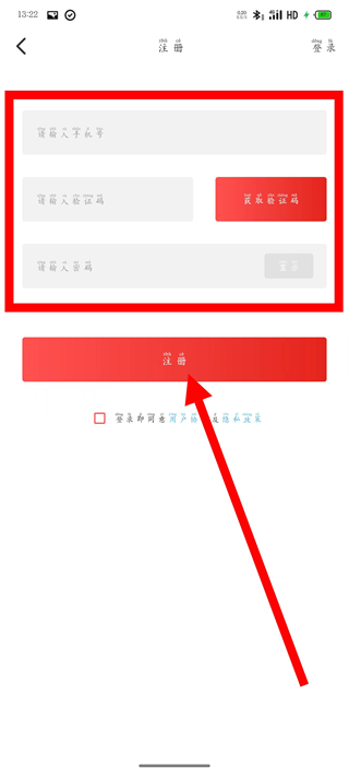 4、在注册页面,输入手机号,填入验证码、设置密码后,勾选协议并点击注册,完成账号注册。