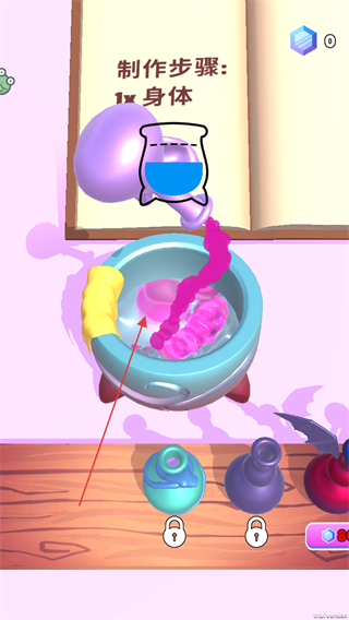 2、按照制作步骤1x身体,将对应材料倒入魔法锅,完成身体部分的材料添加。