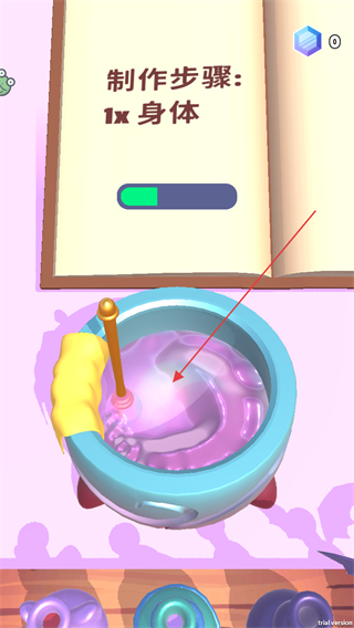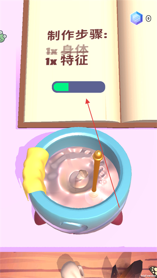 3、搅拌魔法锅内的材料,等待进度条加载完成,推进身体部分的制作进程。
