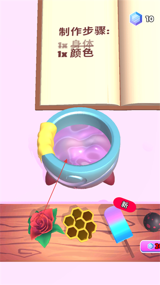 1、按制作步骤1x身体1x颜色,选择对应材料如玫瑰倒入魔法锅,完成材料添加。