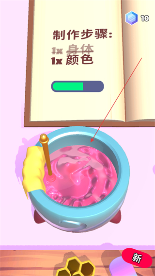 2、搅拌魔法锅内的材料,等待进度条加载,推进颜色部分的制作进程。