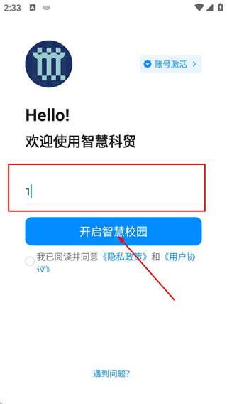 1、在智慧科贸的欢迎弹窗中,点击同意,进入账号输入页面。