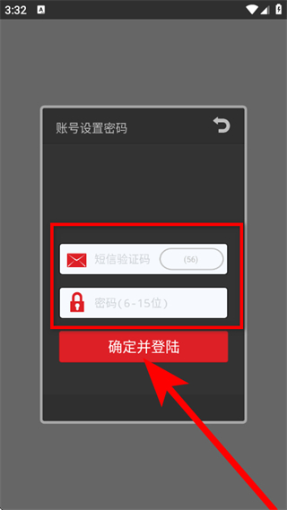 4、在账号设置密码页面,输入验证码并设置密码,点击确定并登陆,完成注册。