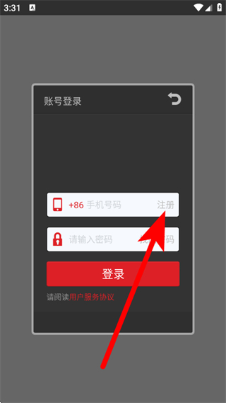 2、在账号登录界面,点击注册,进入账号注册页面。