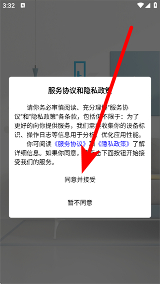 1、打开琨山智能锁,在弹窗中,点击同意并接受。