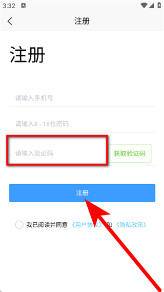 4、填入验证码后,勾选协议并点击注册,完成账号注册。