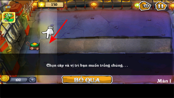 3、紧跟提示点击场地空位,将选中的植物种植在该位置,这是布置防线的核心操作,完成后植物将生效。