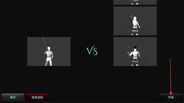 3、在对战准备界面,确认双方角色配置后,点击界面的开始按钮,开启当前的对战环节。