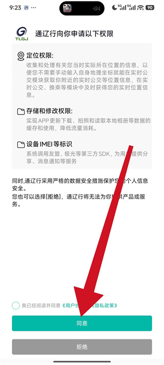 1、打开通辽行,在弹窗中勾选我已阅读并同意,点击同意,进入应用主界面。