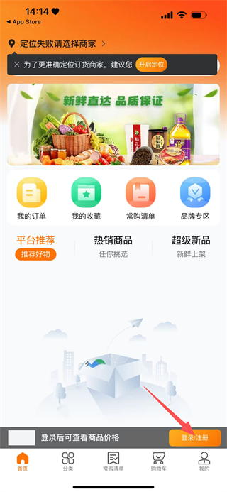 1、在APP首页,点击选择的登录/注册按钮,进入登录页面。